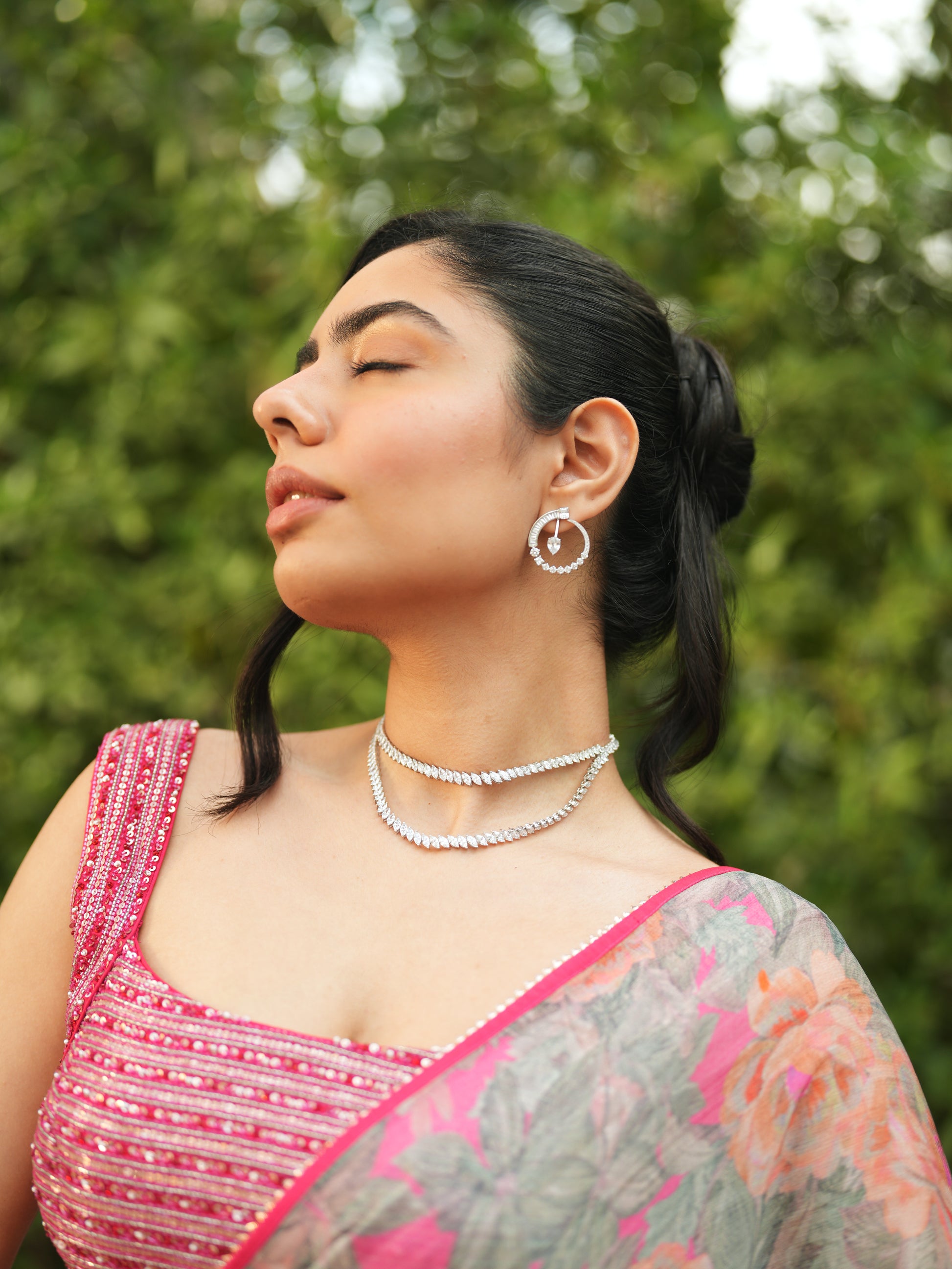 Embellished Grey Chiffon Printed Saree Set